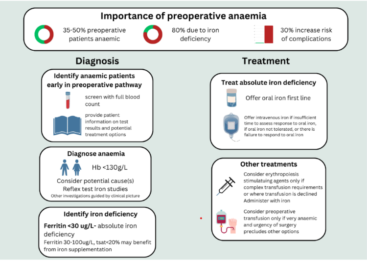- Assessment for anaemia in patients undergoing elective surgery should be performed early in the preoperative pathway (1C).